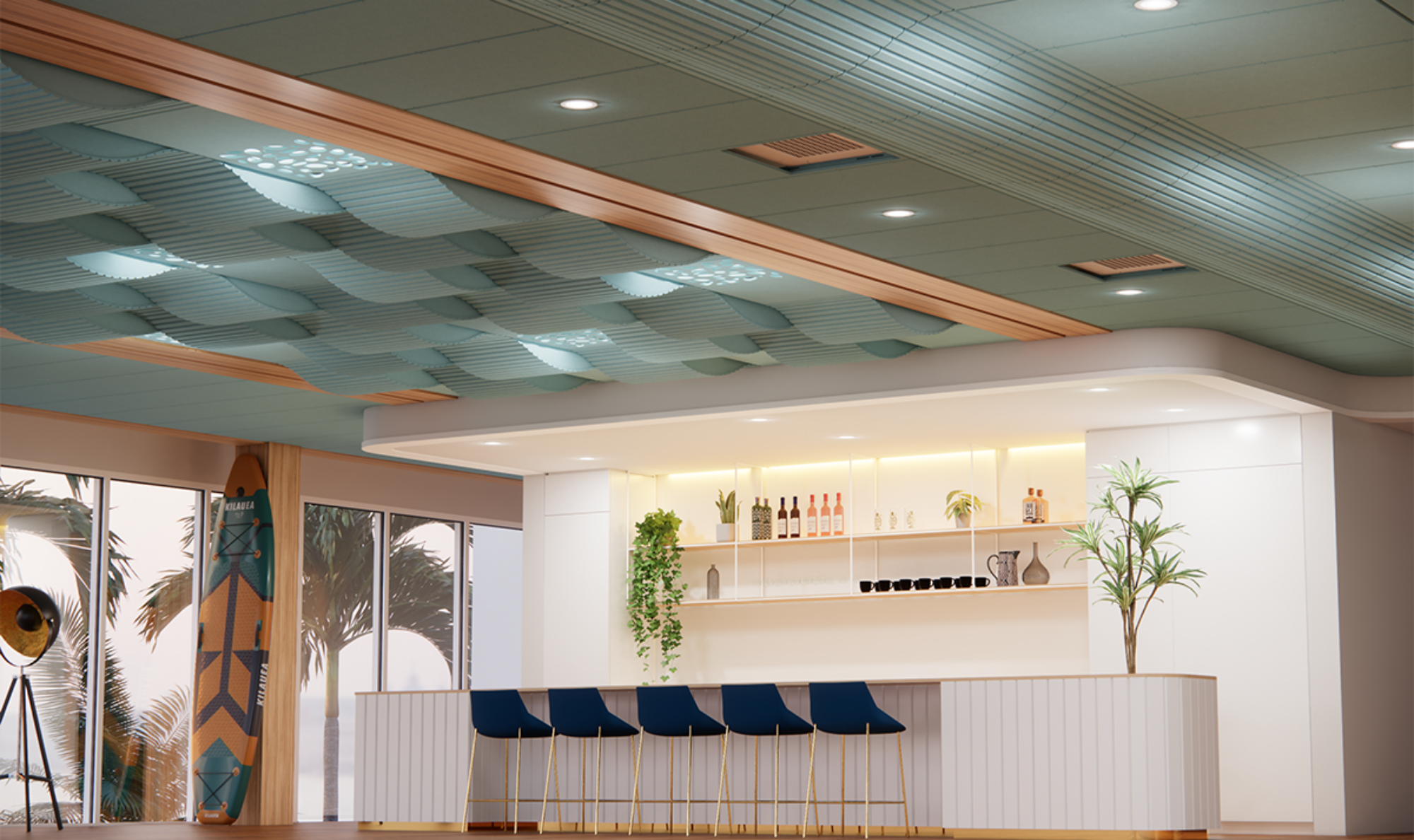 Nos panneaux San Francisco, qui évoquent les collines de la célèbre ville californienne, masquent les faux plafonds disgracieux. Plats, ondulés ou laissant passer la lumière, nos panneaux sont la solution idéale pour donner du relief et de la personnalité à un plafond standard.